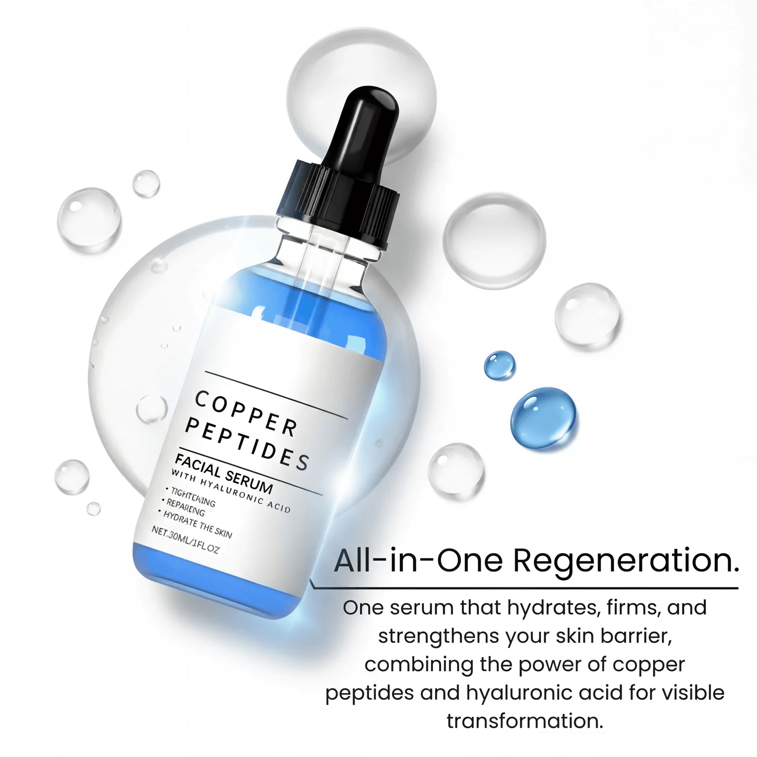 Copper Tripeptide-1 is a naturally occurring bioactive peptide present in human plasma. It is widely recognized for its ability to improve overall skin quality — increasing collagen density and elastin, enhancing skin thickness and firmness, accelerating tissue repair, and reducing the appearance of wrinkles. A clinically supported ingredient, it plays a powerful role in elevating skin health and facial aesthetics.
